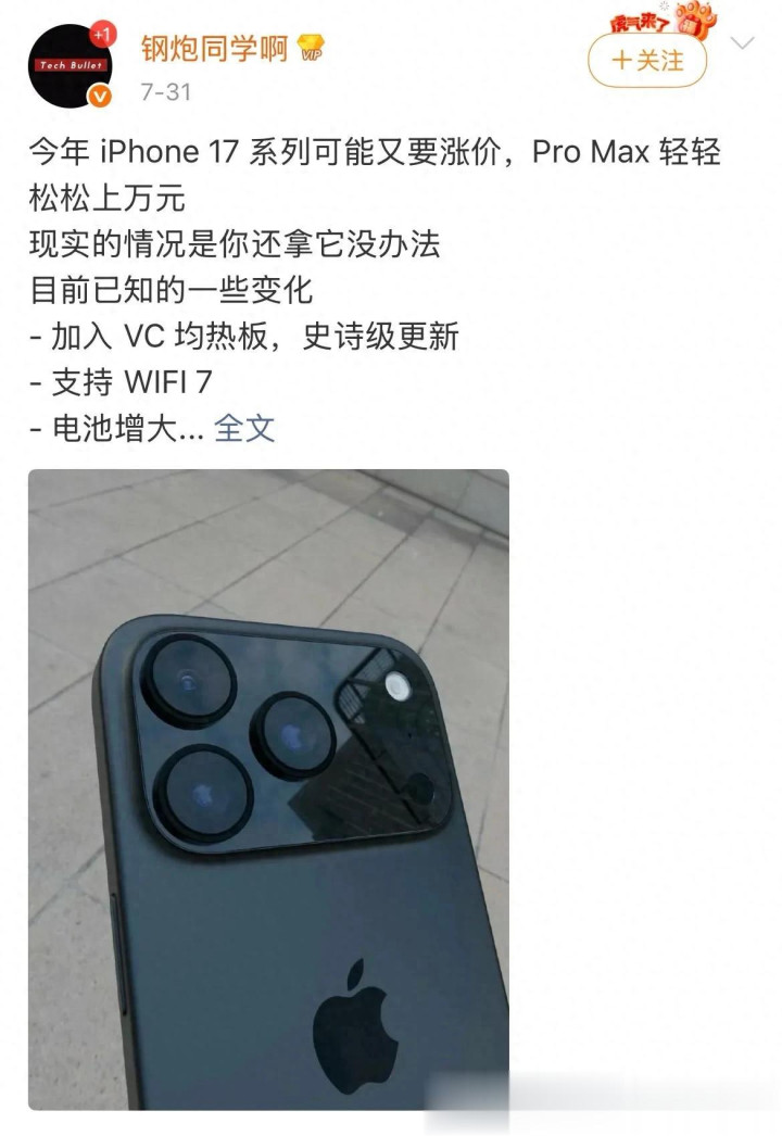 数码博主钢炮同学啊爆料称,受供应链成本激增影响,iPhone 17系列或迎来全面涨价,Pro Max机型售价将“轻松突破万元大关”。结合多方信息,新机虽因涨价引发争议,但多项配置升级仍被视作苹果平衡市场预期的关键筹码。